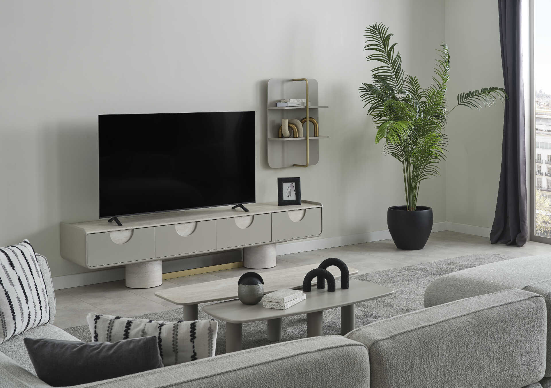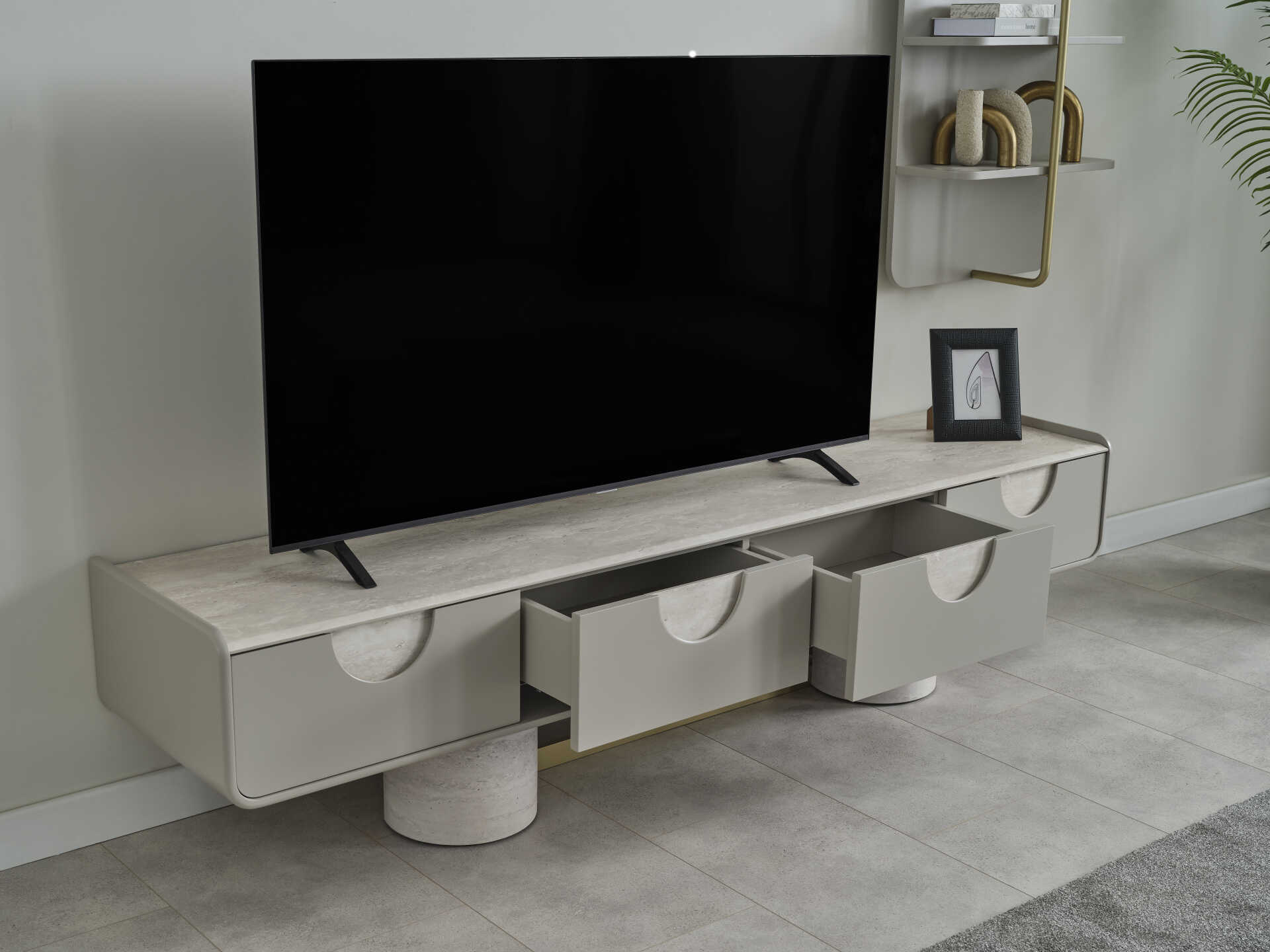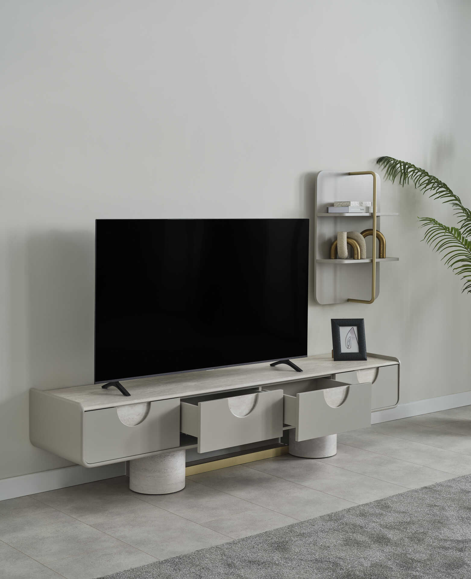 Modern bohem tarzının sıcak ve özgür ruhunu yansıtan Bonny TV Ünitesi Takımı, salonunuza hem karakter hem de doğal bir şıklık katıyor. Bonny koleksiyonunun samimi ve davetkar estetiği, bu tasarımda TV keyfinizi tamamlayacak fonksiyonel bir yapı ile birleşiyor.