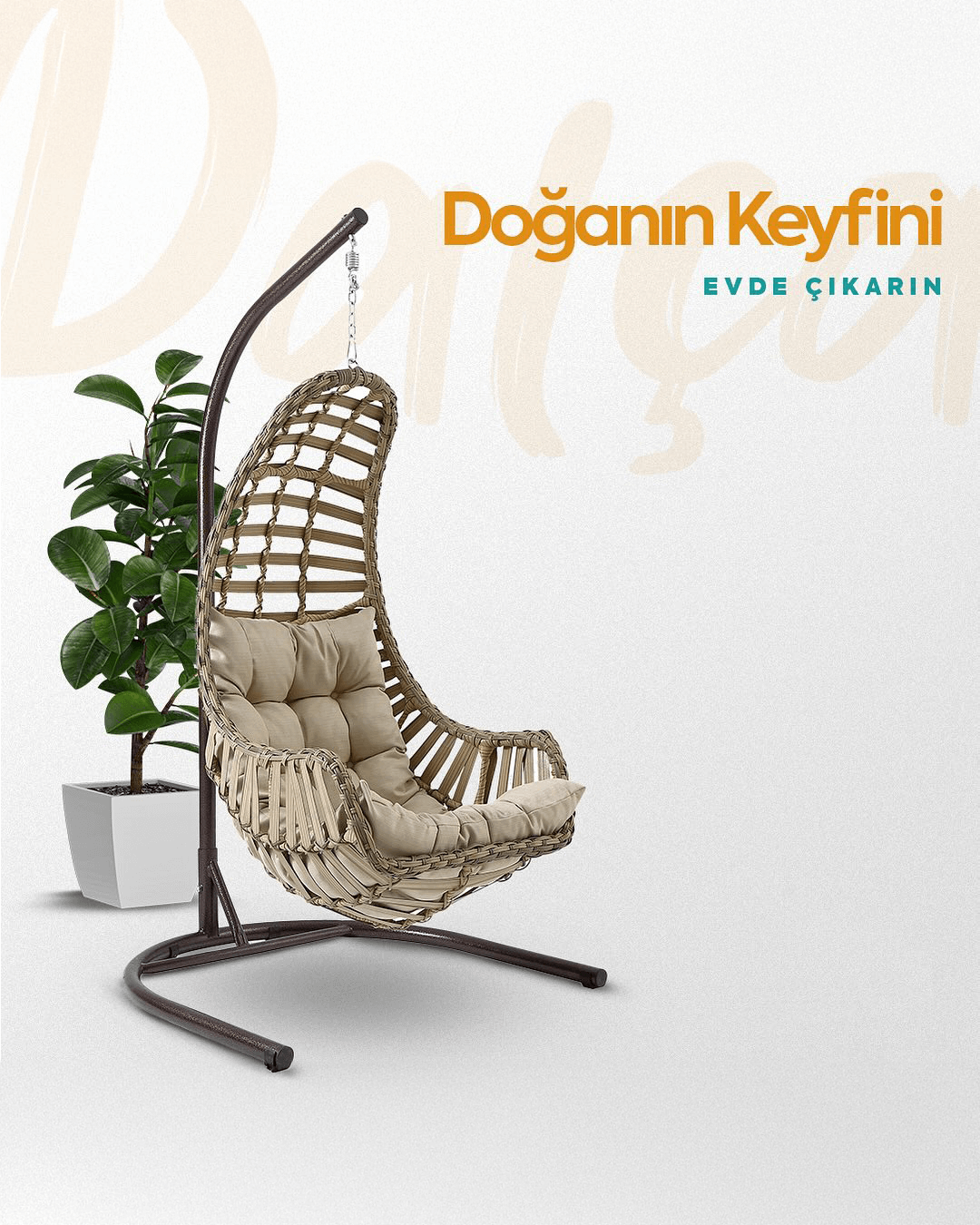 Malzeme: Rattan Gövde, Su Kaydırıcı Kumaş, Zincirli Çelik Askı Aparatı.