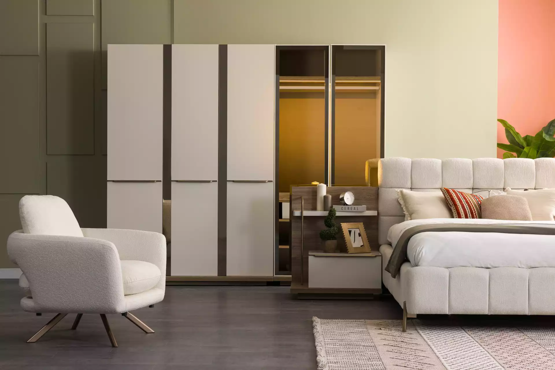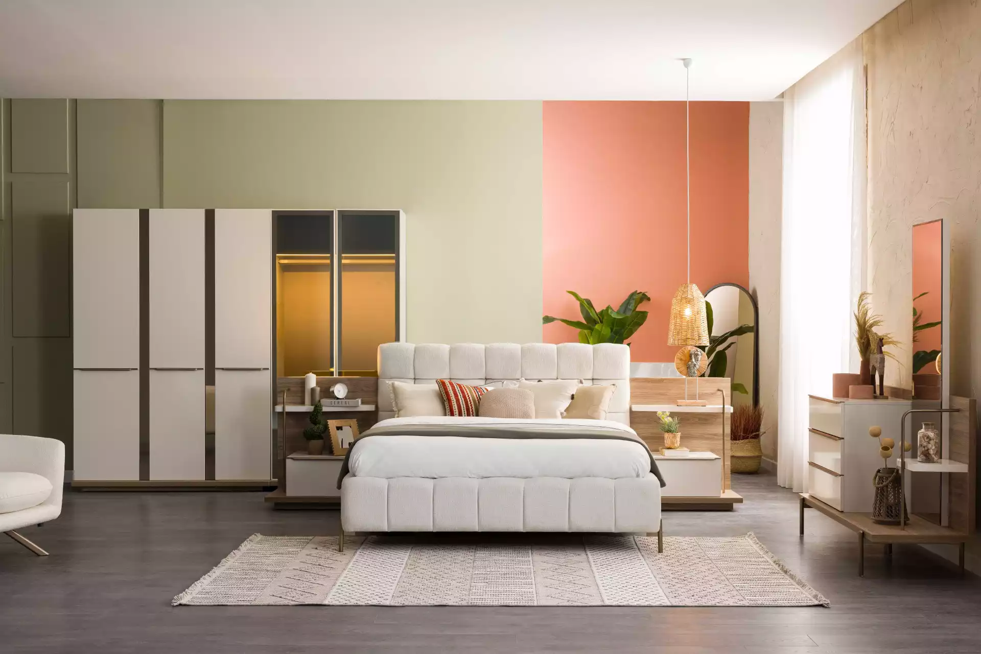 İsabella Yatak Odası Takımı; dolap, karyola, şifonyer, ayna ve komodinlerden oluşan zarif ve işlevsel bir tasarımla yaşam alanlarınıza modern bir şıklık getirir.