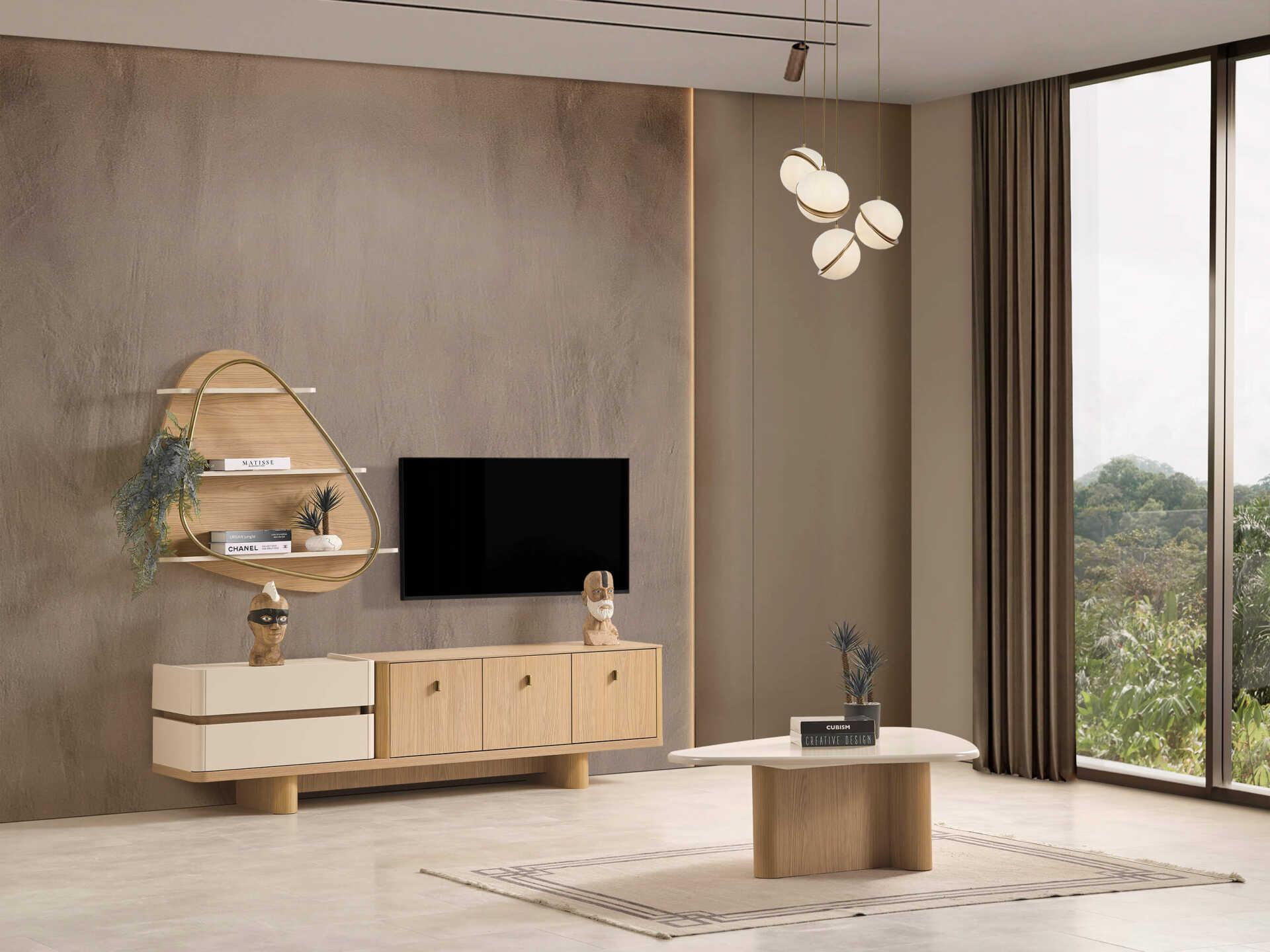 Hem estetik hem de fonksiyonel bir TV ünitesi arayan, yaşam alanında fark yaratmak isteyenler için Lotus TV Ünitesi kusursuz bir seçimdir.