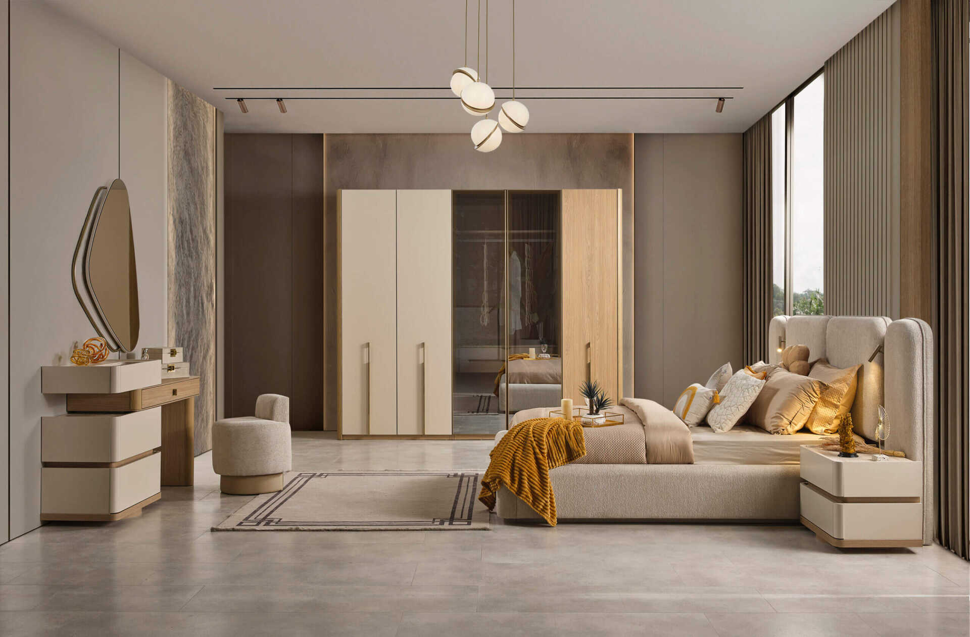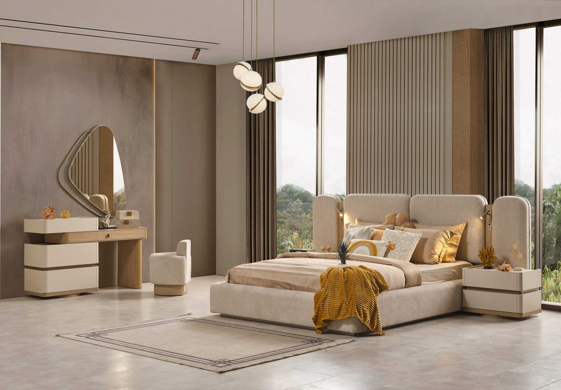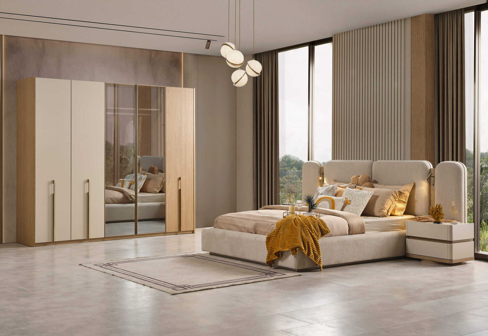 Modern yaşamın karmaşasından uzaklaşmak ve huzurlu bir sığınak yaratmak isteyenler için tasarlanan Lotus Yatak Odası Takımı, minimalist estetiği lüks detaylarla buluşturuyor. Üretici açıklamasında da belirtildiği gibi, takımın sakinleştirici bir etkisi olan genel tasarımı, yatak odanızda dingin bir atmosfer yaratır. Krem ve bej tonlarının hakim olduğu koleksiyon, yumuşak ve net çizgileriyle dikkat çeker.