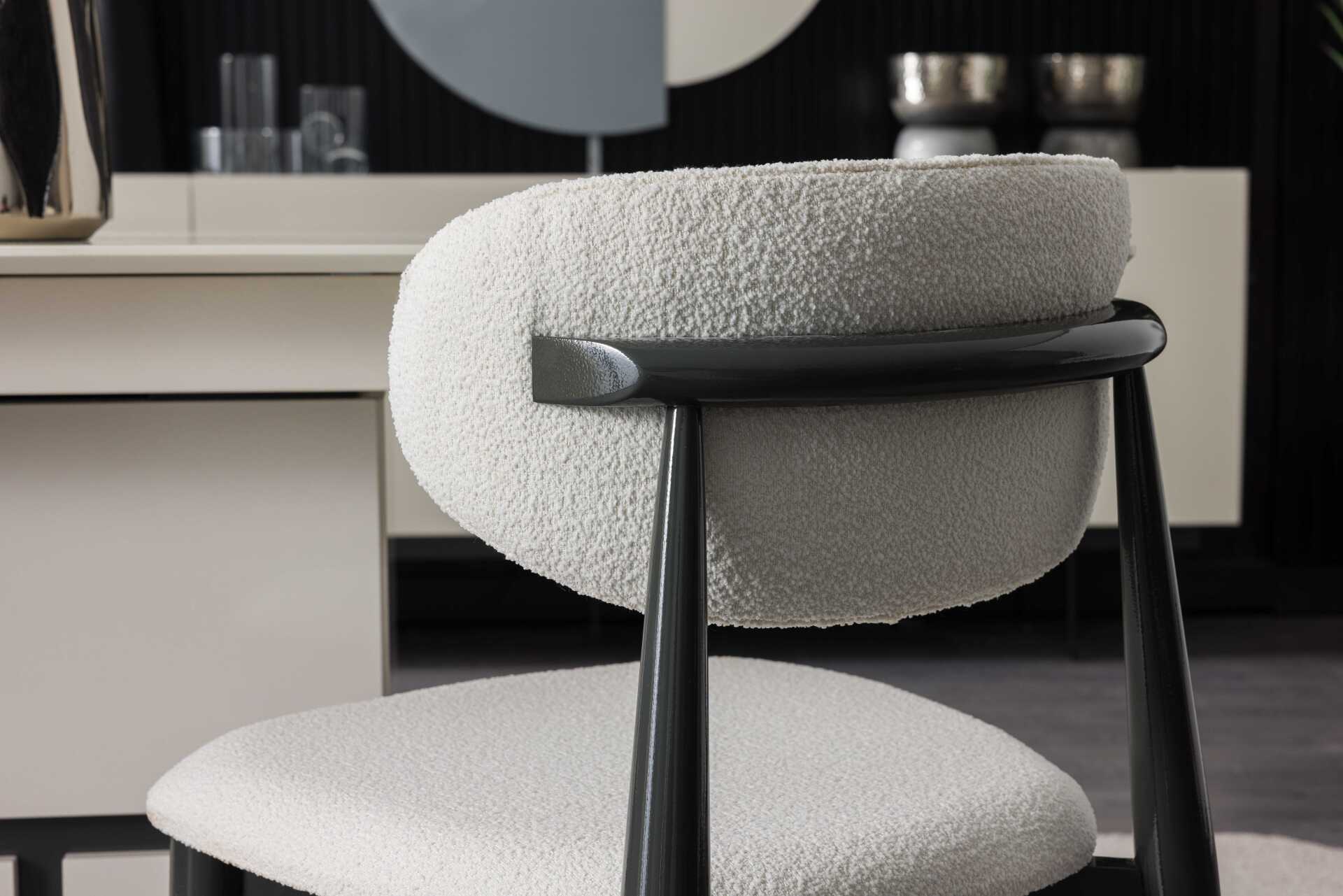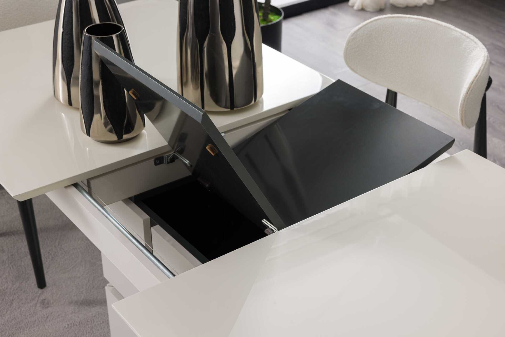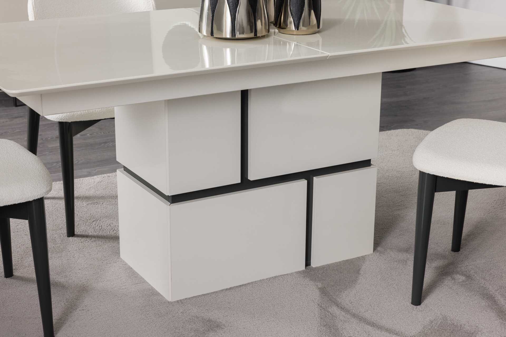 Pablo Yemek Odası Takımı, modern tasarımı ve sofistike detaylarıyla yemek odanıza zarif bir atmosfer kazandırıyor. Minimalist çizgilerle şekillenen masa ve konsol, siyah-beyaz kontrastıyla öne çıkan estetik bir duruş sergiliyor. Geniş konsol, yemek takımlarınızı düzenli bir şekilde saklamanıza olanak tanırken, açılabilir masa mekanınıza esneklik sunuyor. Yuvarlak formdaki dekoratif ayna ise mekâna derinlik ve ferahlık katarak şıklığı tamamlıyor. Pablo Yemek Odası Takımı, hem fonksiyonel hem de görsel açıdan fark yaratmak isteyenler için ideal bir seçimdir.