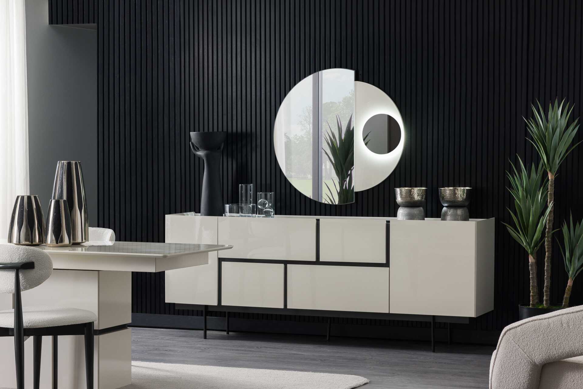 Pablo Yemek Odası Takımı; zarif masa, geniş konsol ve dekoratif aynasıyla modern tasarımı yaşam alanlarınıza getiriyor.