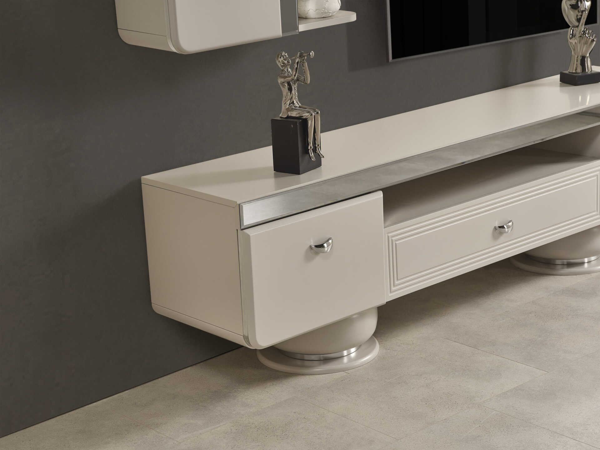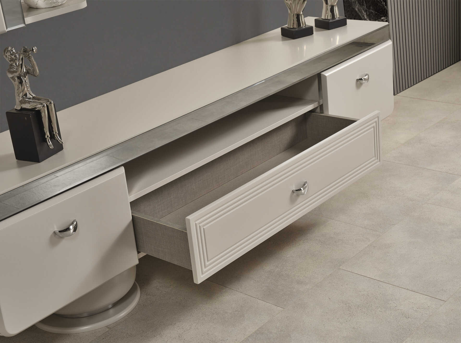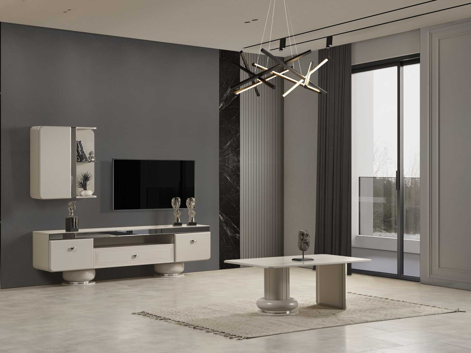 Verona Yemek Odası Takımı'nı mükemmel bir şekilde tamamlayan Verona TV Ünitesi, salonunuzda bütüncül ve stil sahibi bir dekorasyon yaratmanız için tasarlandı.
